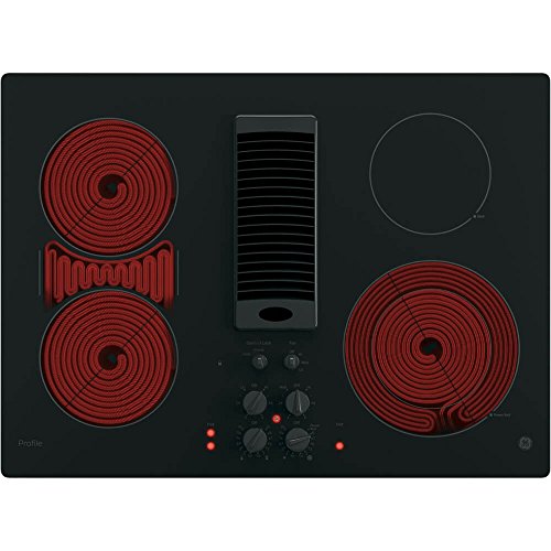 Profile 30" Black Electric Smoothtop Cooktop - Downdraft4 Elements, 6" - 9", 800 - 3000 Watt W/ Downdraft