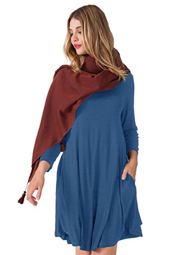 Features: flowy dress, casual style, swing, flare hem, O neck, 3/4 sleeve, fall winter dresses for women, plus size dress, assorted colors