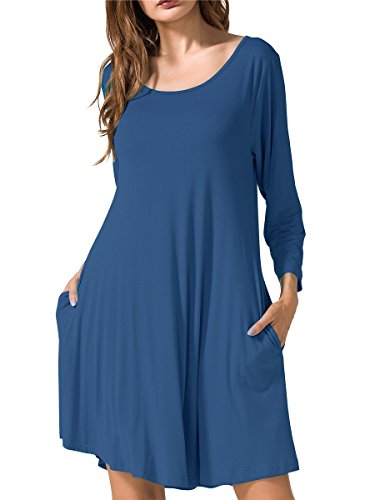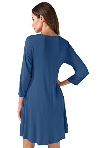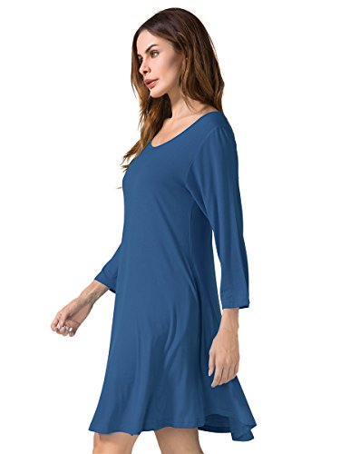 JollieLovin Women's Round Neck Casual Plain Loose Fit 3/4 Sleeve T-shirt Swing Tunic Dress with Flare Hem